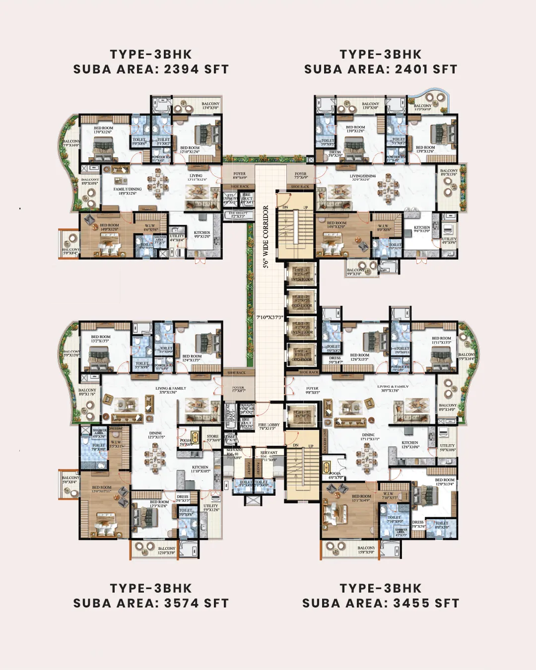 Spread across 1.4 acres, this iconic development features 116 exclusive residences rising up to 32 floors, offering expansive 3 & 4 BHK homes ranging from 2,387 to 3,574 sq. ft.